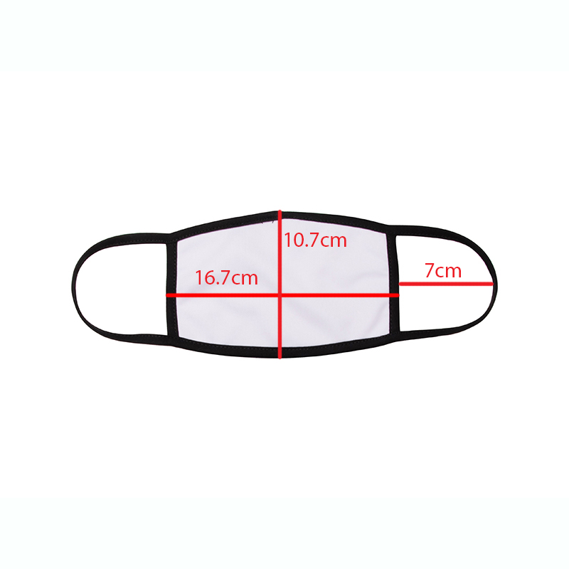 Small: Mask Area: 16.7 x 10.7 cm Earloop width is 7cm.