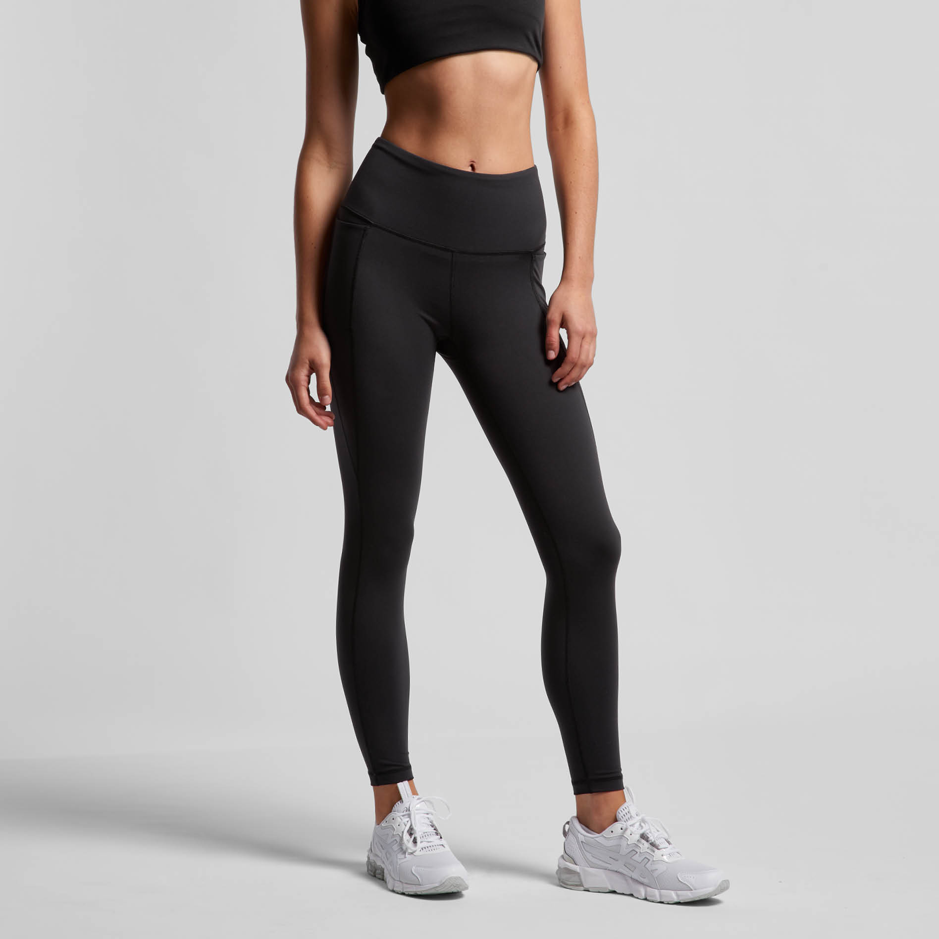 Matte finish, full length, high waist, 2 x side pockets, contour seam detailing, moisture wicking, quick drying, high elastane content for resilience